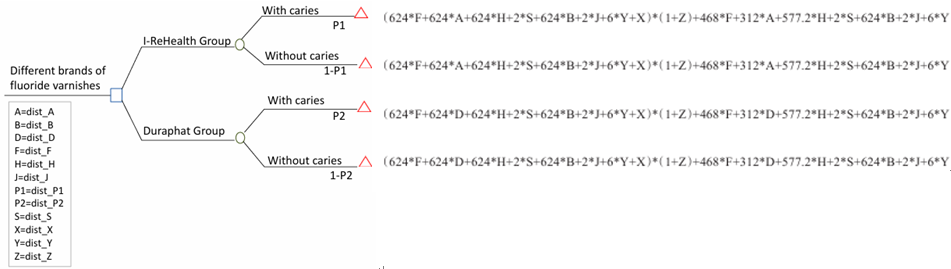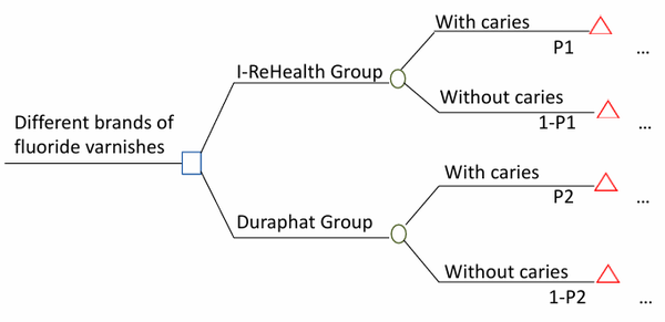 Fig 2 Decision tree model for caries prevention with two fluoride varnishes