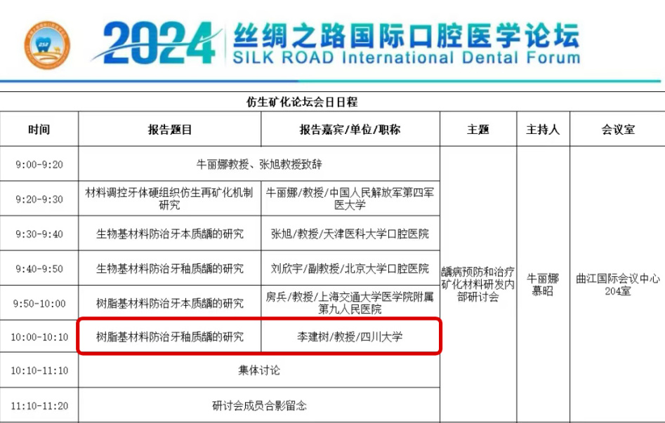 · 絲綢之路西安口腔展 · 金秋十月,口腔盛事再啟華章。10月16日-10月18日,由陜、甘、寧、青、新、晉、豫、蒙、閩及新疆生產(chǎn)建設(shè)兵團(tuán)10家口腔醫(yī)學(xué)會(huì)共同主辦,空軍軍醫(yī)大學(xué)口腔醫(yī)院、西安交通大學(xué)口腔醫(yī)院協(xié)辦的2024第八屆絲綢之路國(guó)際口腔醫(yī)學(xué)論壇暨口腔器材設(shè)備藥品展覽會(huì),在西安曲江國(guó)際會(huì)議中心圓滿落幕。 愛睿康醫(yī)療創(chuàng)始人李建樹教授(四川大學(xué)華西口腔醫(yī)院雙聘教授)受邀出席參加本次大會(huì),并在“齲病預(yù)防和治療礦化材料研發(fā)內(nèi)部研討會(huì)”做學(xué)術(shù)報(bào)告。 ![]() 國(guó)家重點(diǎn)研發(fā)計(jì)劃項(xiàng)目--專家組成員合影留念 ![]() 愛睿康醫(yī)療攜樂齒氟保護(hù)漆、氟防齲材料、窩溝封閉劑、氟化泡沫等經(jīng)典產(chǎn)品亮相本次展區(qū),與業(yè)界精英共襄盛舉,分享口腔設(shè)備創(chuàng)新技術(shù)成果。 ![]() ![]()